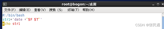 此时 date +"%F %T" 作为一个命令,要赋给变量 str1 就需要加 `