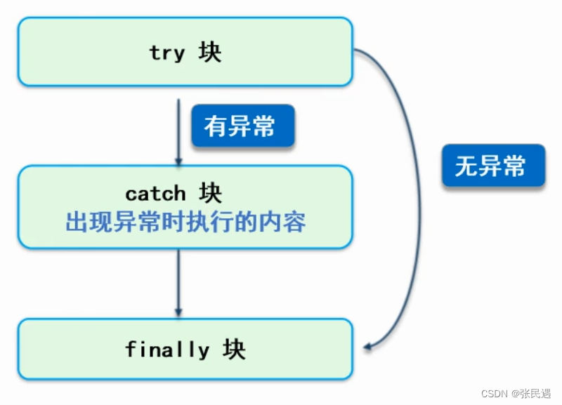 捕获异常通过 try{……} catch() {……} finally{……} 模式解决,try 里面填写可能出现异常的代码;catch 括号里声明异常类型,代码块里写处理方式;finally 里面填写不论是否出现异常都要执行的代码(可选)。