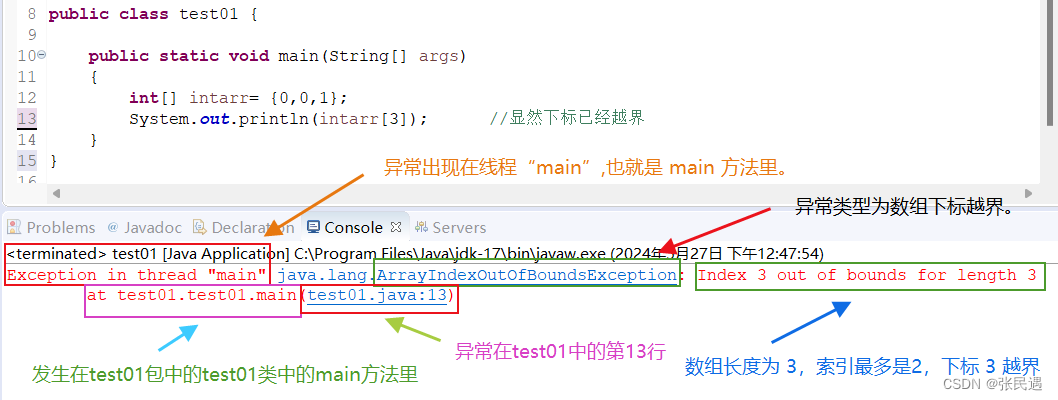 System.out.println(intarr[3]); //显然下标已经越界