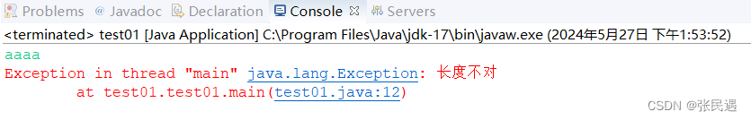 Exception e=new Exception("长度不对"); //自定义异常