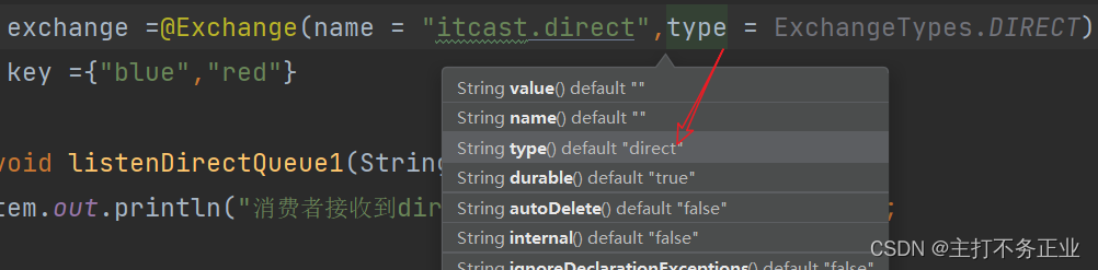 exchange =@Exchange(name = "itcast.topic",type = ExchangeTypes.TOPIC),