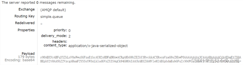rabbitTemplate.convertAndSend("simple.queue","", msg);