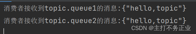 System.out.println("消费者接收到topic.queue2的消息:{" +msg+ "}");