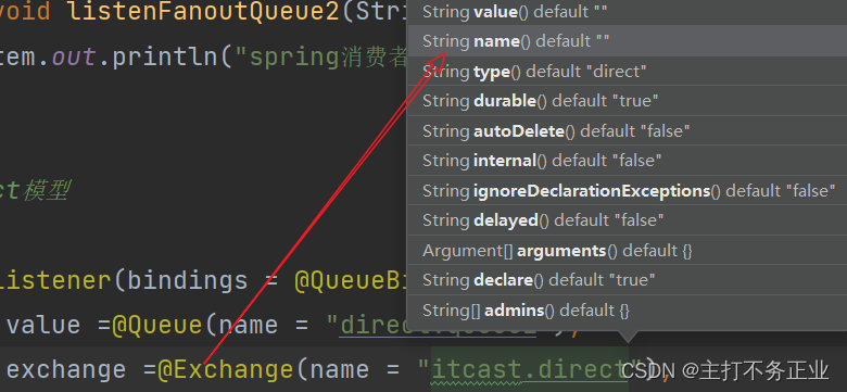 rabbitTemplate.convertAndSend("itcast.direct","red","hello,Direct");