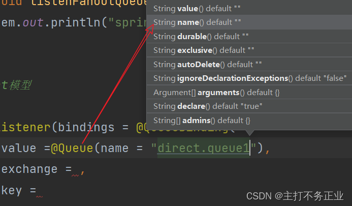 上面3.1中我们提到了,交换机与队列绑定代码过于繁琐,接下来,运用注解@RabbitListener来实现;