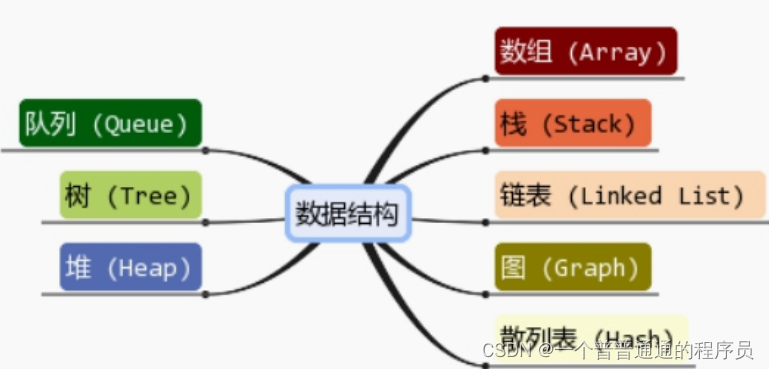 数组,栈,队列,链表,链表,树,散列,堆,图
