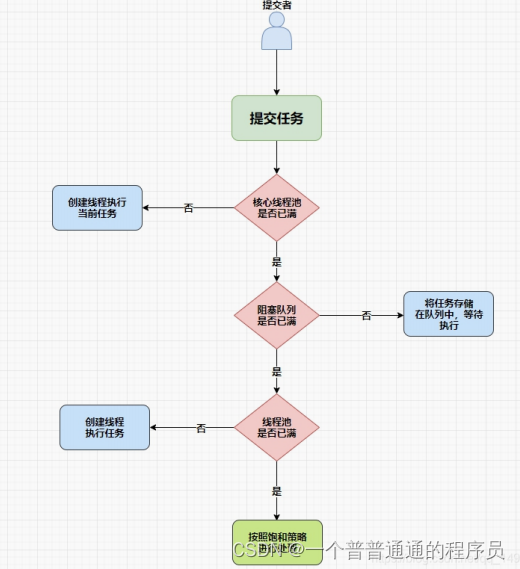 1>.线程池判断核心线程池是否已经满了,不是的话创建线程执行当前任务,否则进入2>