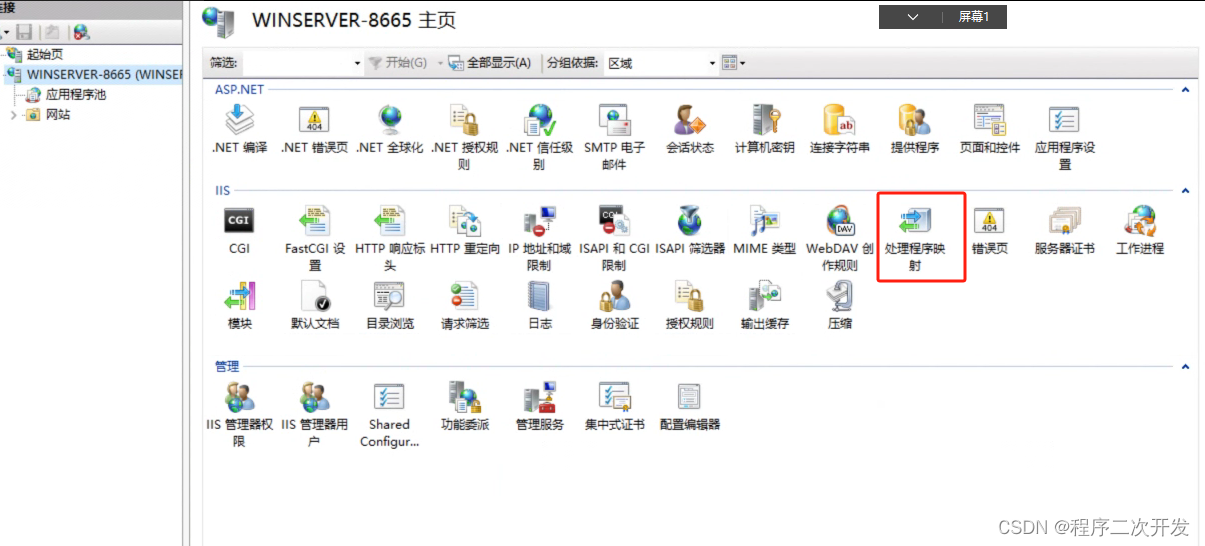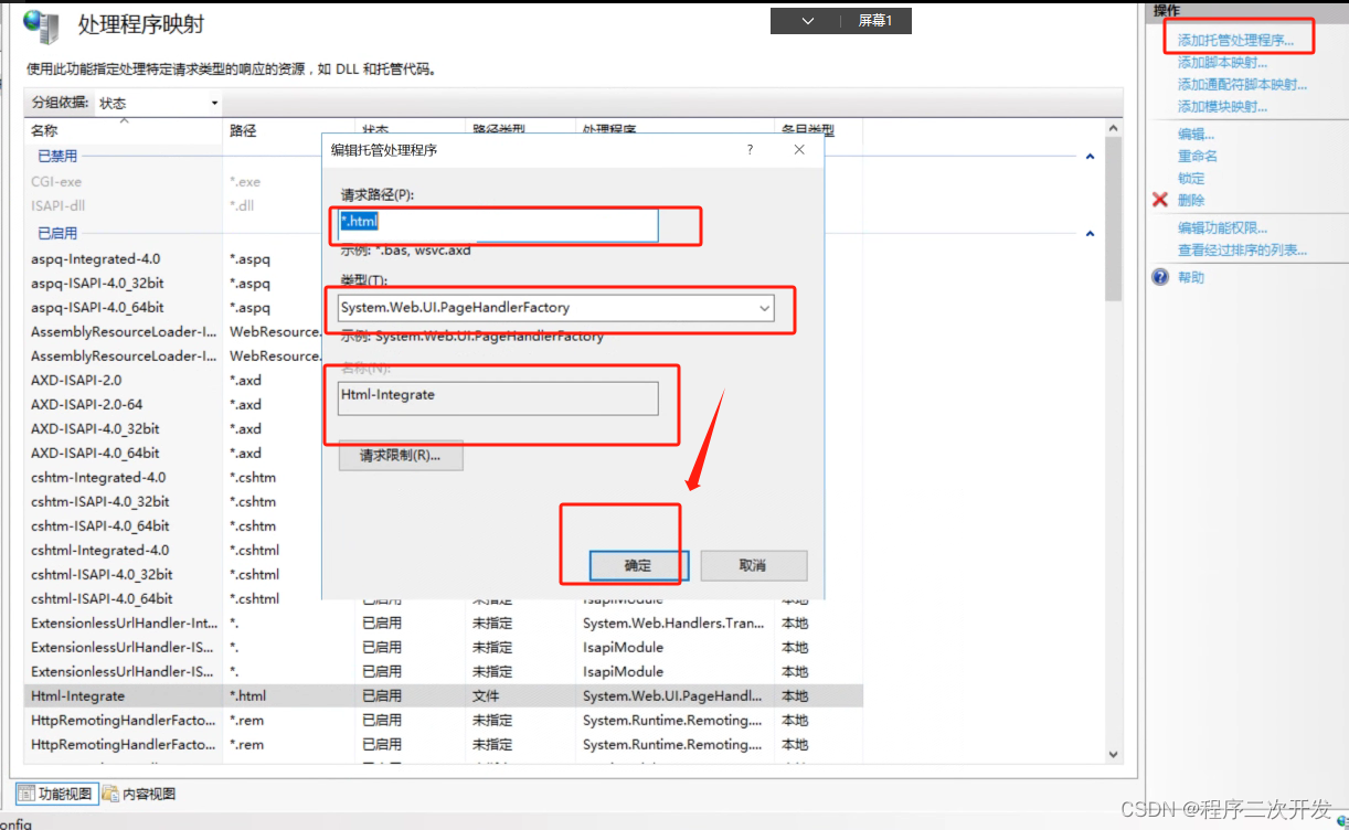 2 双击处理程序映射,添加托管处理程序: