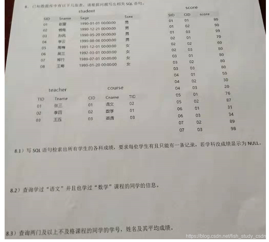 from 从哪张表中查找数据 如:[涉及到成绩:成绩表score]