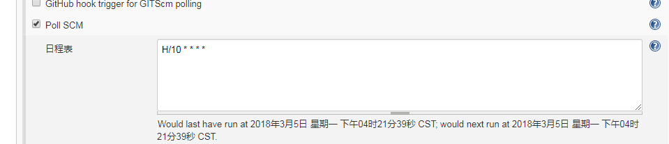 Poll SCM:该选项是配合上面这个选项使用的。当代码仓库发生改动,jenkins并不知道。需要配置这个选项,周期性的去检查代码仓库是否发生改动。
