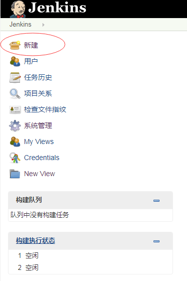 登录Jenkins, 点击左侧的新建,创建新的构建任务。