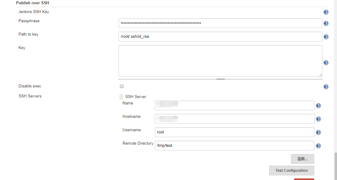 SSH Servers: 由于jenkins服务器公钥文件我已经配置好,所以之后新增SSH Servers 只需要配置这一项即可。