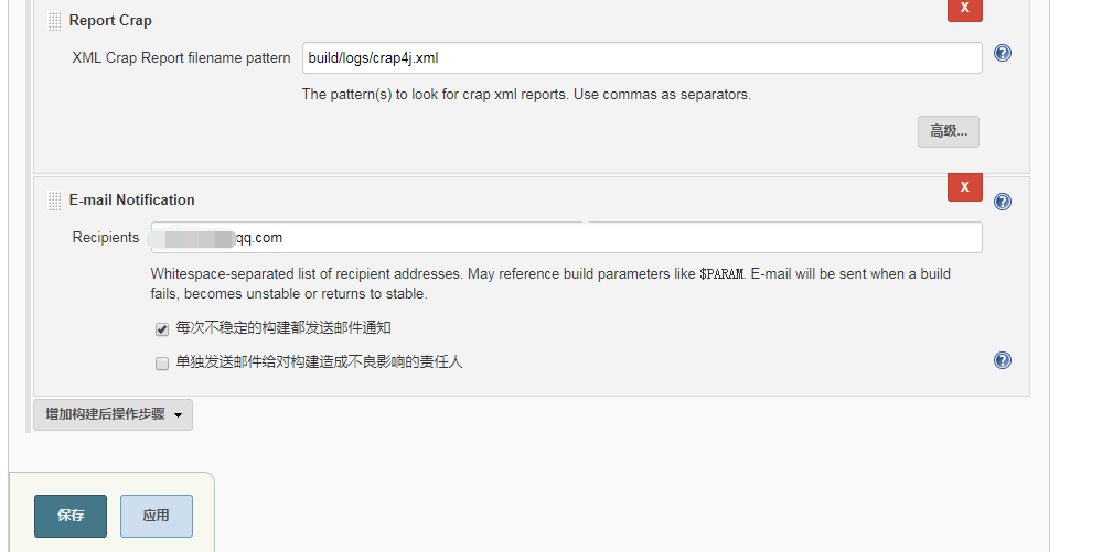 E-mail Notification: 邮件通知,构建完成后发邮件到指定的邮箱。