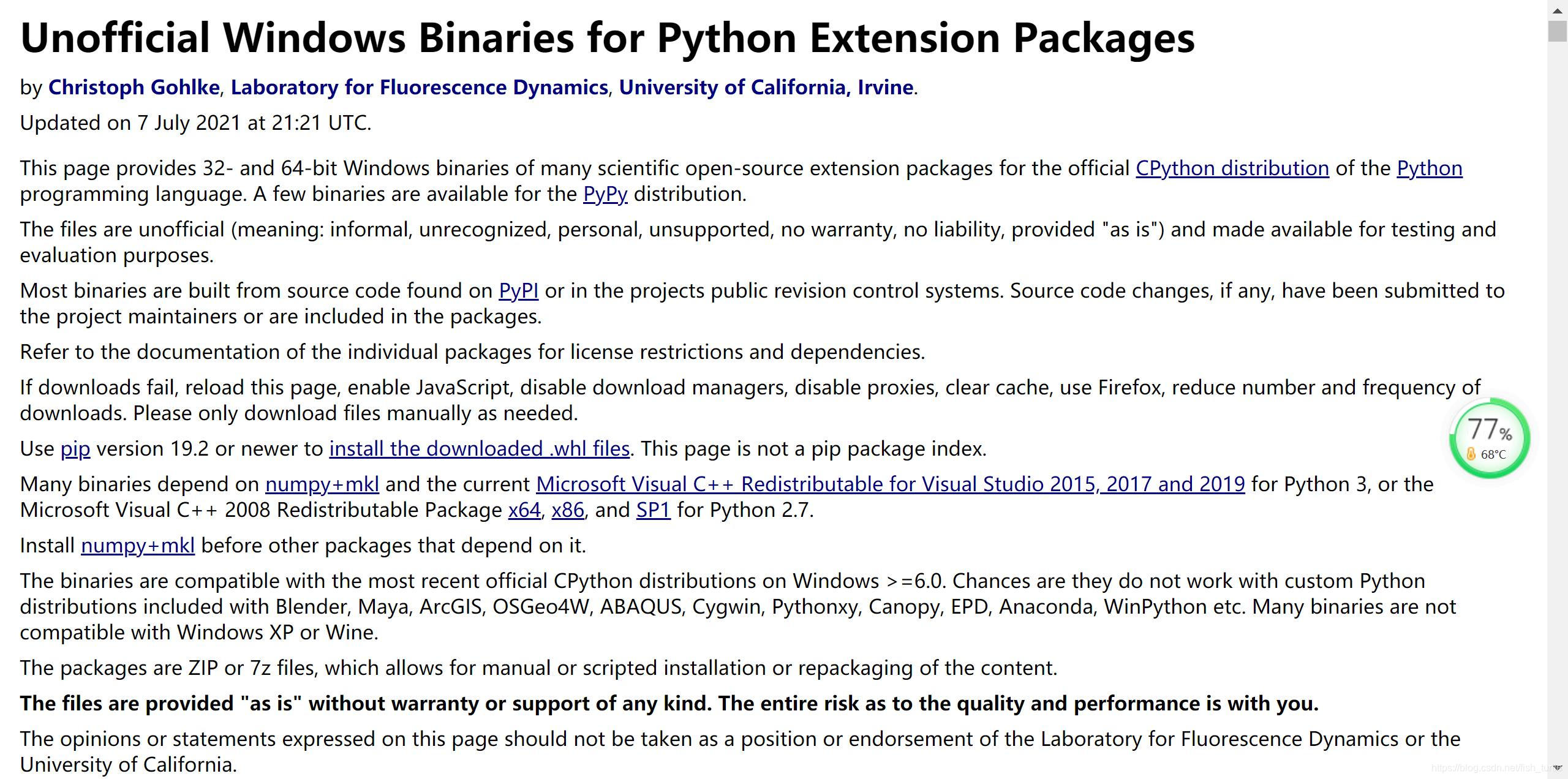 URL:https://www.lfd.uci.edu/~gohlke/pythonlibs/#matplotlib