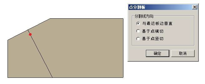 【分割楼板】命令,点选楼板中任选位置,即可自动识别与点距离最近的板边线,并基于边线垂直分切楼板。如图所示是分切后效果。