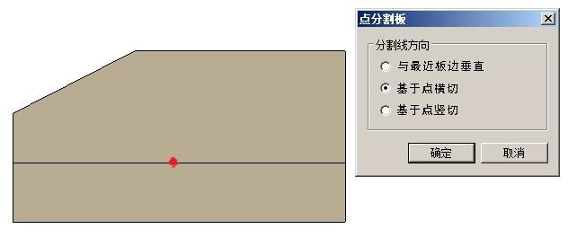 【分割楼板】命令,点选楼板中任选位置,即可根据点所在位置的水平线自动将楼板分割。如图所示是分切后效果。