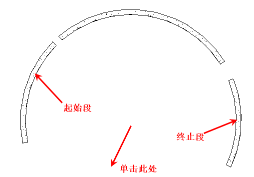 (3)如果拾取的梁是圆弧梁,并且起始和终止梁不重叠,则还需要拾取一点作为梁合并的方向位置。