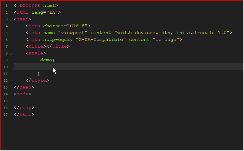 如果有些缩写你拿不准,Emmet 会根据你的输入内容匹配最接近的语法,比如输入 ov:h、ov-h、ovh 和 oh,生成的代码是相同的: