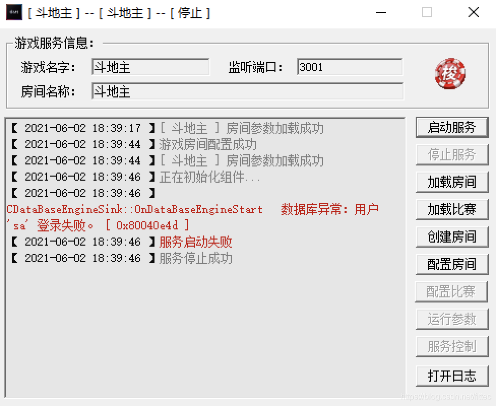 运行游戏服务程序准备启动斗地主服务,突然报