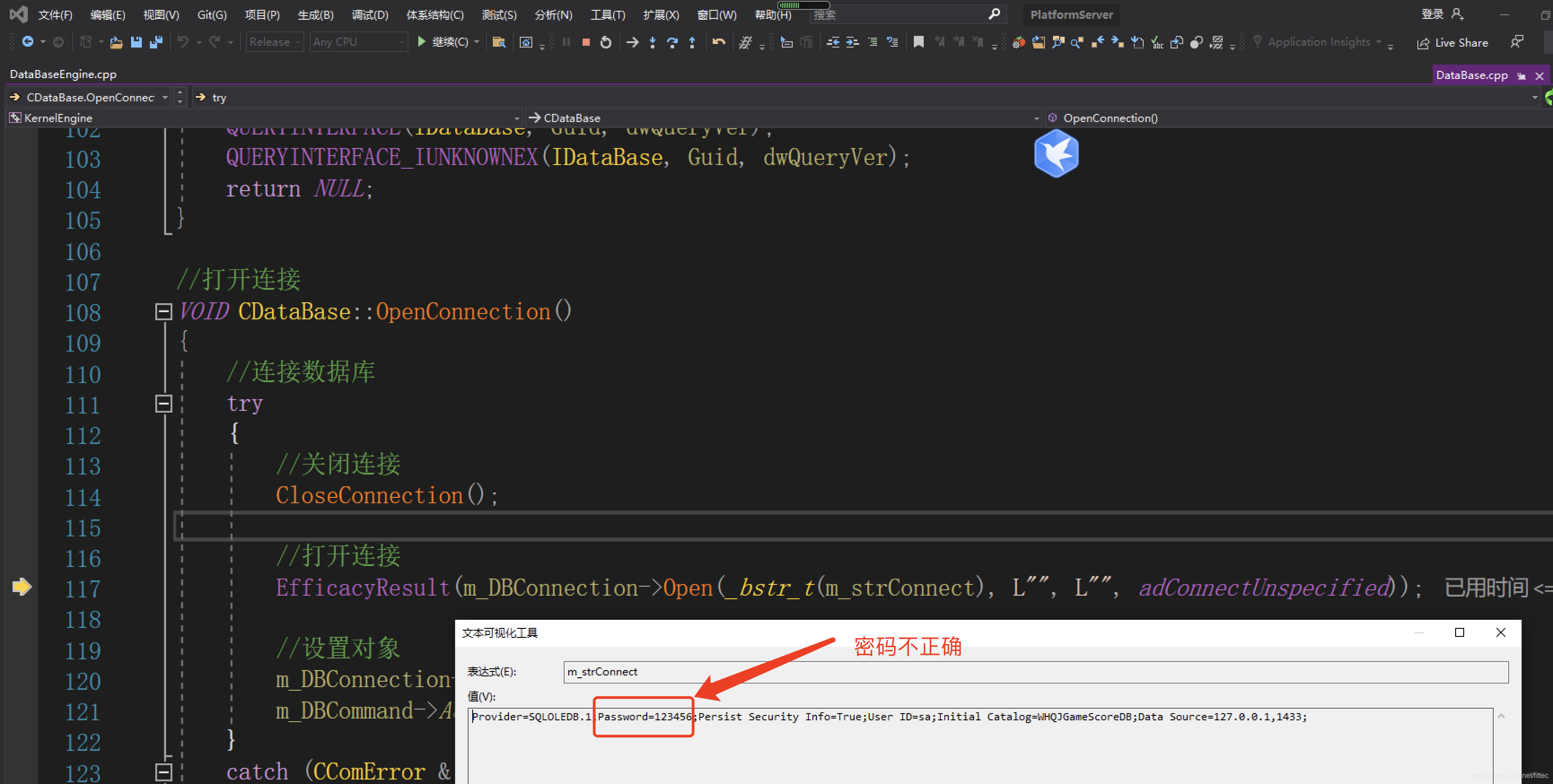 CDataBaseEngineSink::OnDataBaseEngineStart 数据库异常:用户 'sa' 登录失败。 [ 0x80040e4d ]