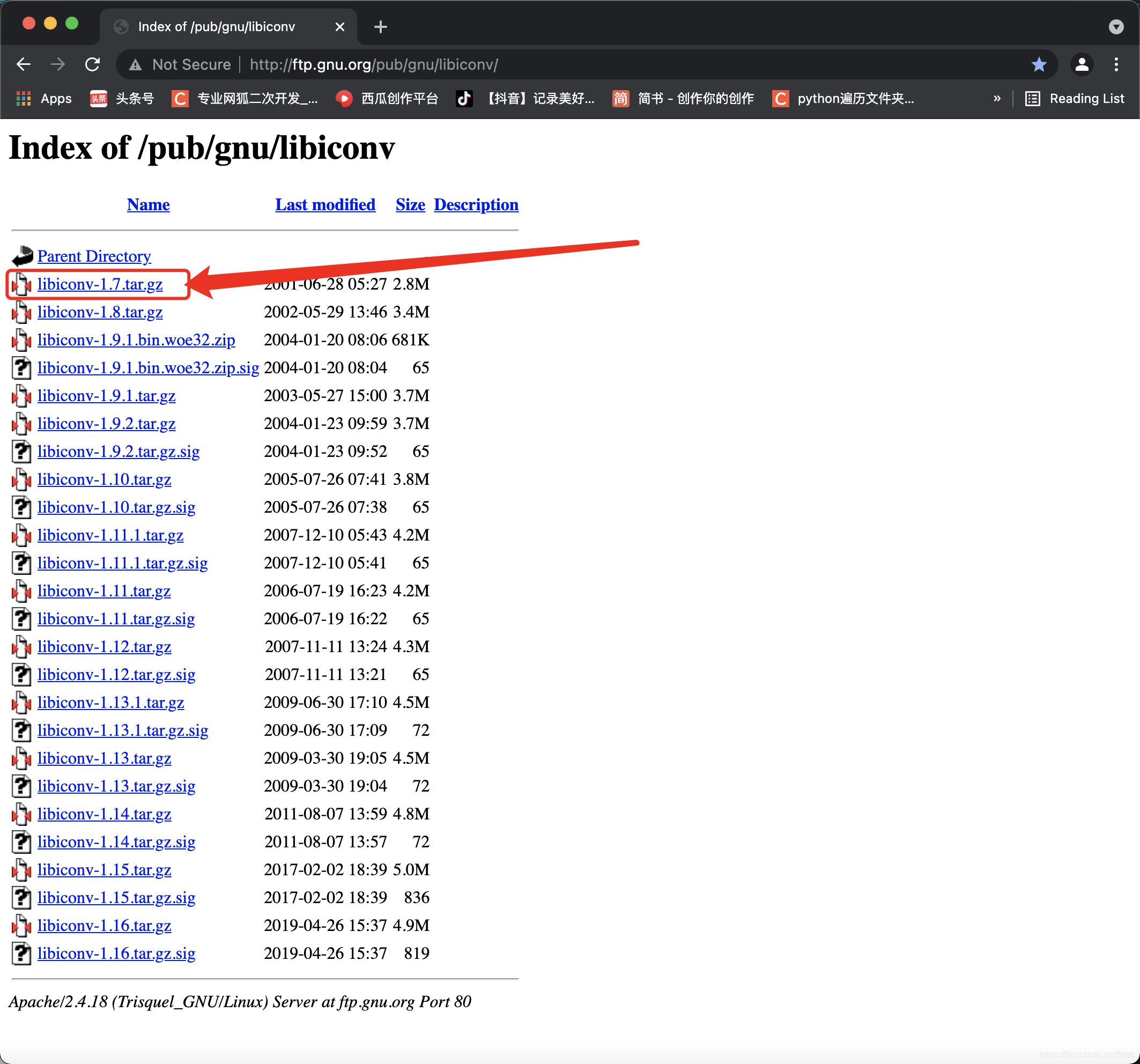 打开libiconv下载地址:http://ftp.gnu.org/pub/gnu/libiconv/