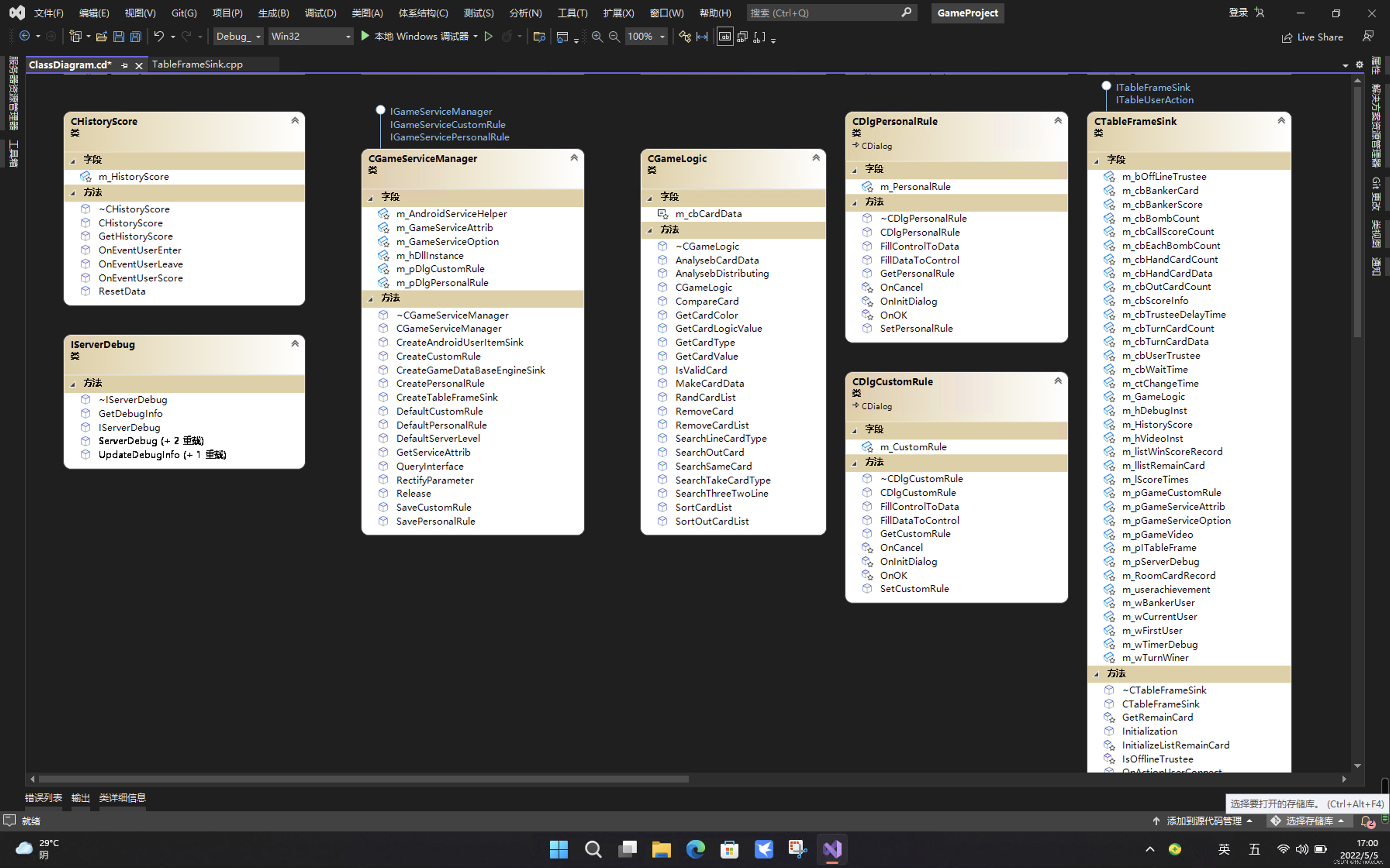 桌子框架类CTableFrameSink实现两个接口,分别是ITableFrameSink接口与ITableUserAction接口