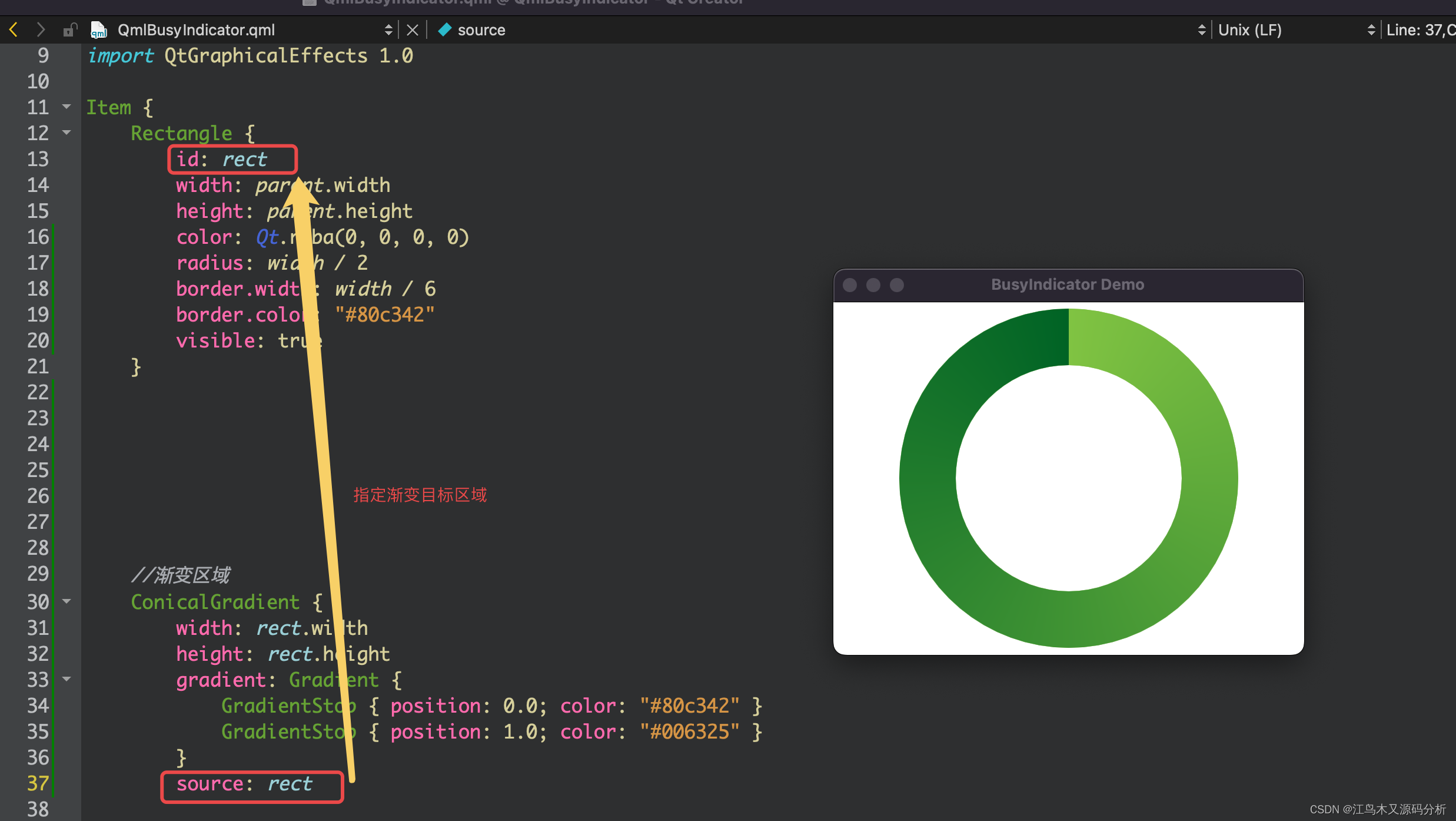 import QtGraphicalEffects 1.0 //ConicalGradient组件所在类
