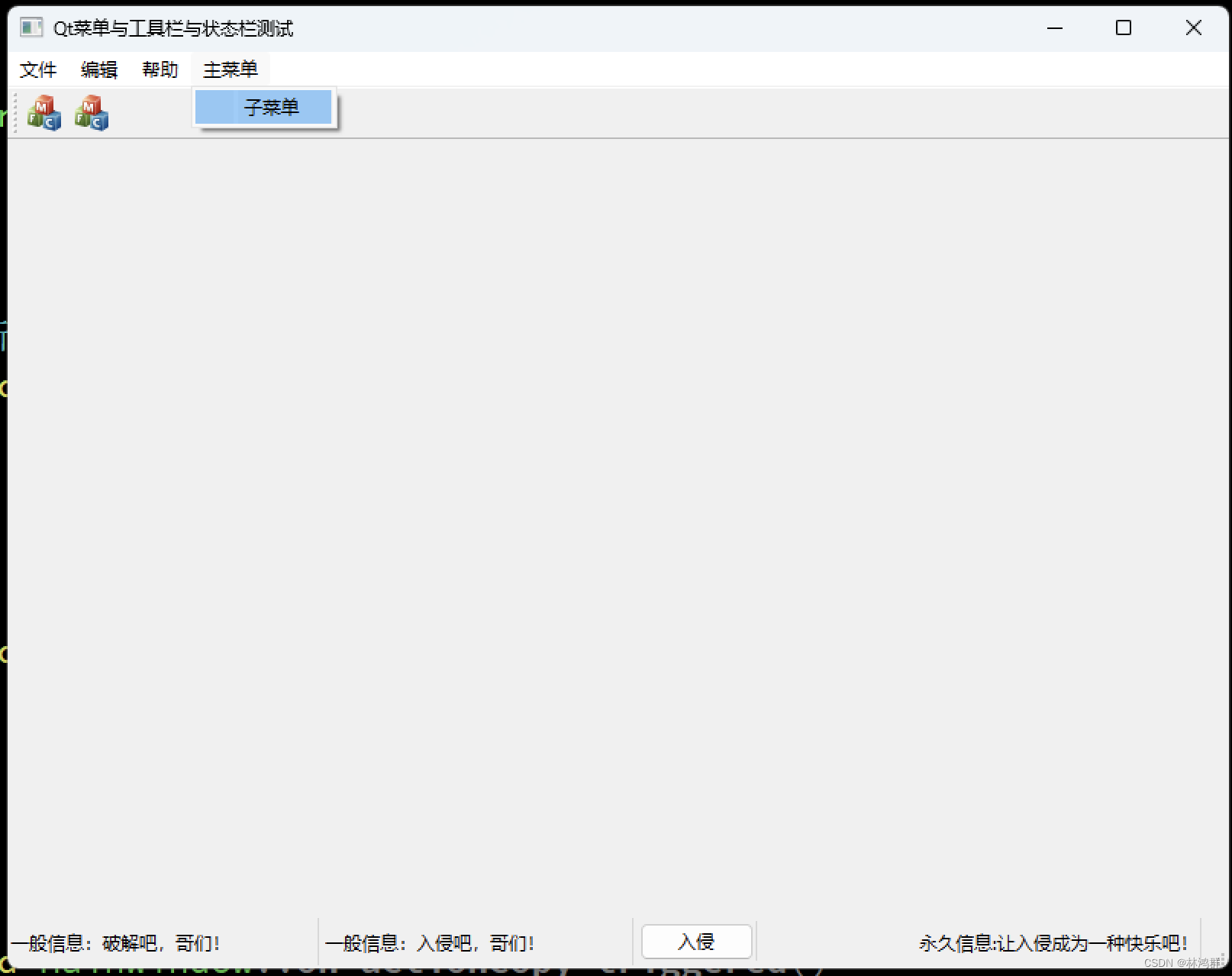 此时,运行程序,菜单栏可看到主菜单了,点击主菜单也会弹出 子菜单