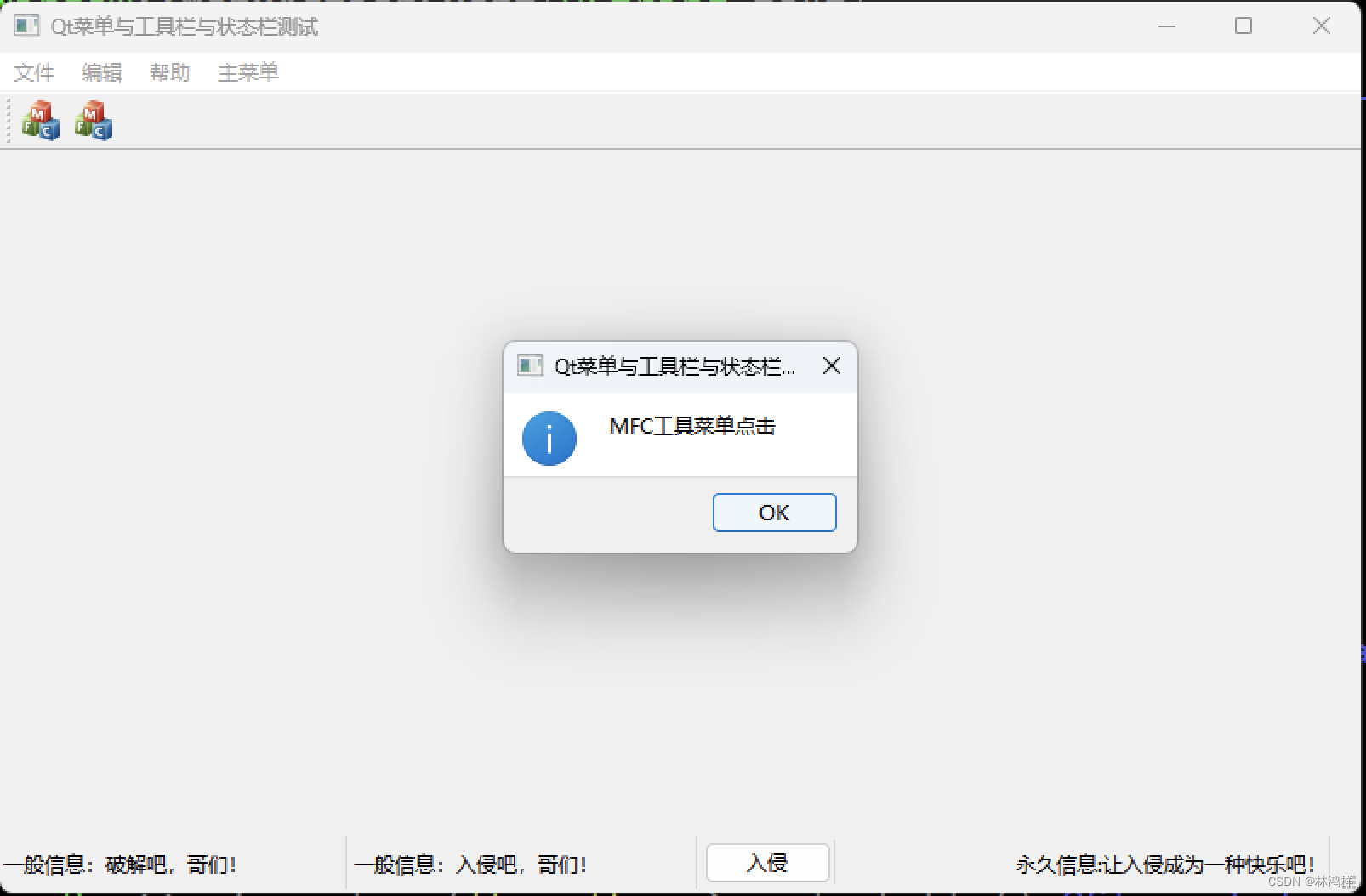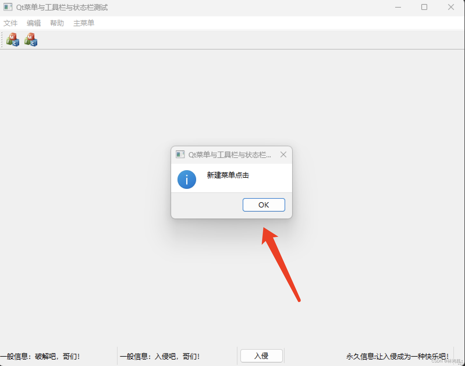 QMessageBox::information(this,NULL,QStringLiteral("入侵成功!"));