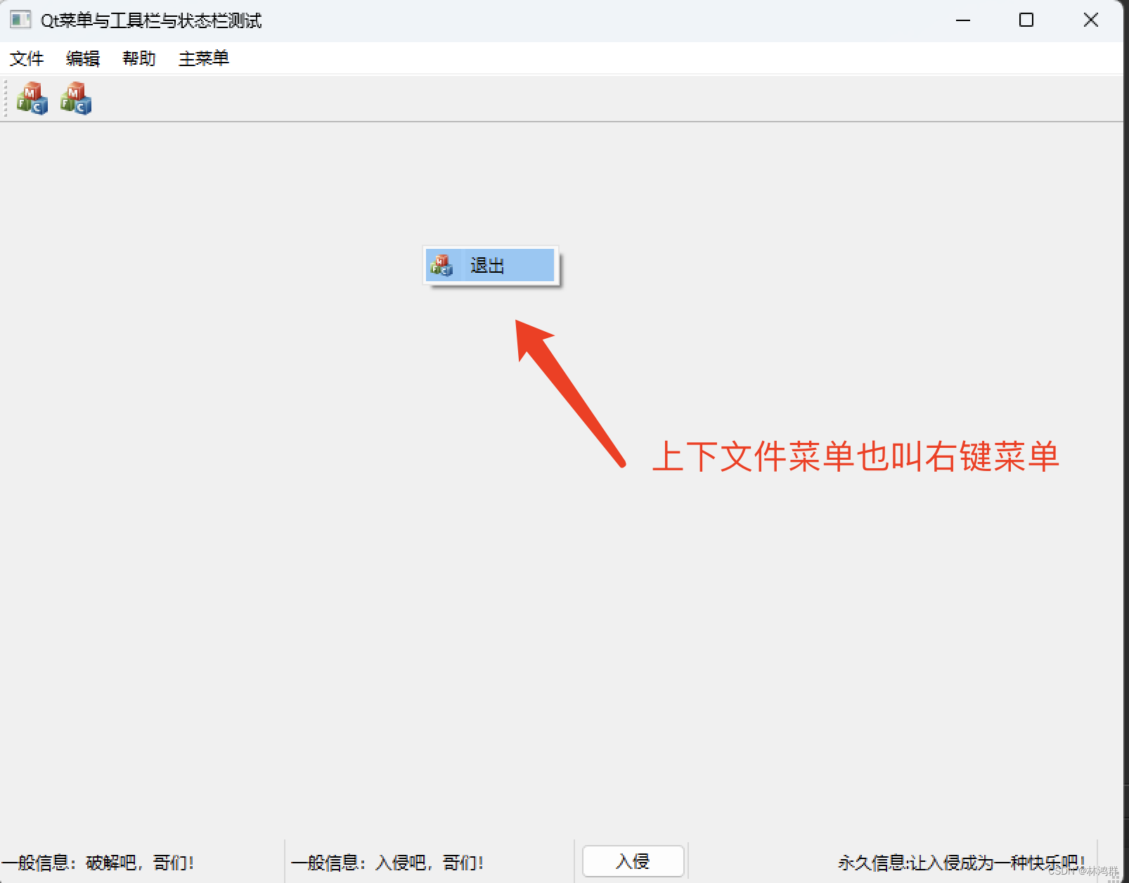 this->setWindowTitle(QStringLiteral("Qt菜单与工具栏与状态栏测试"));
