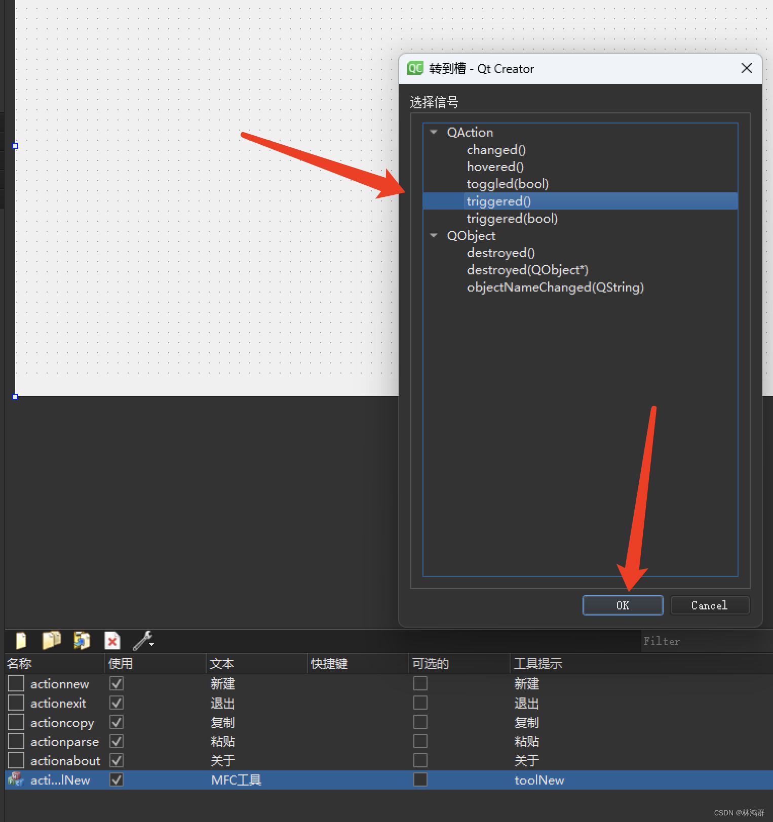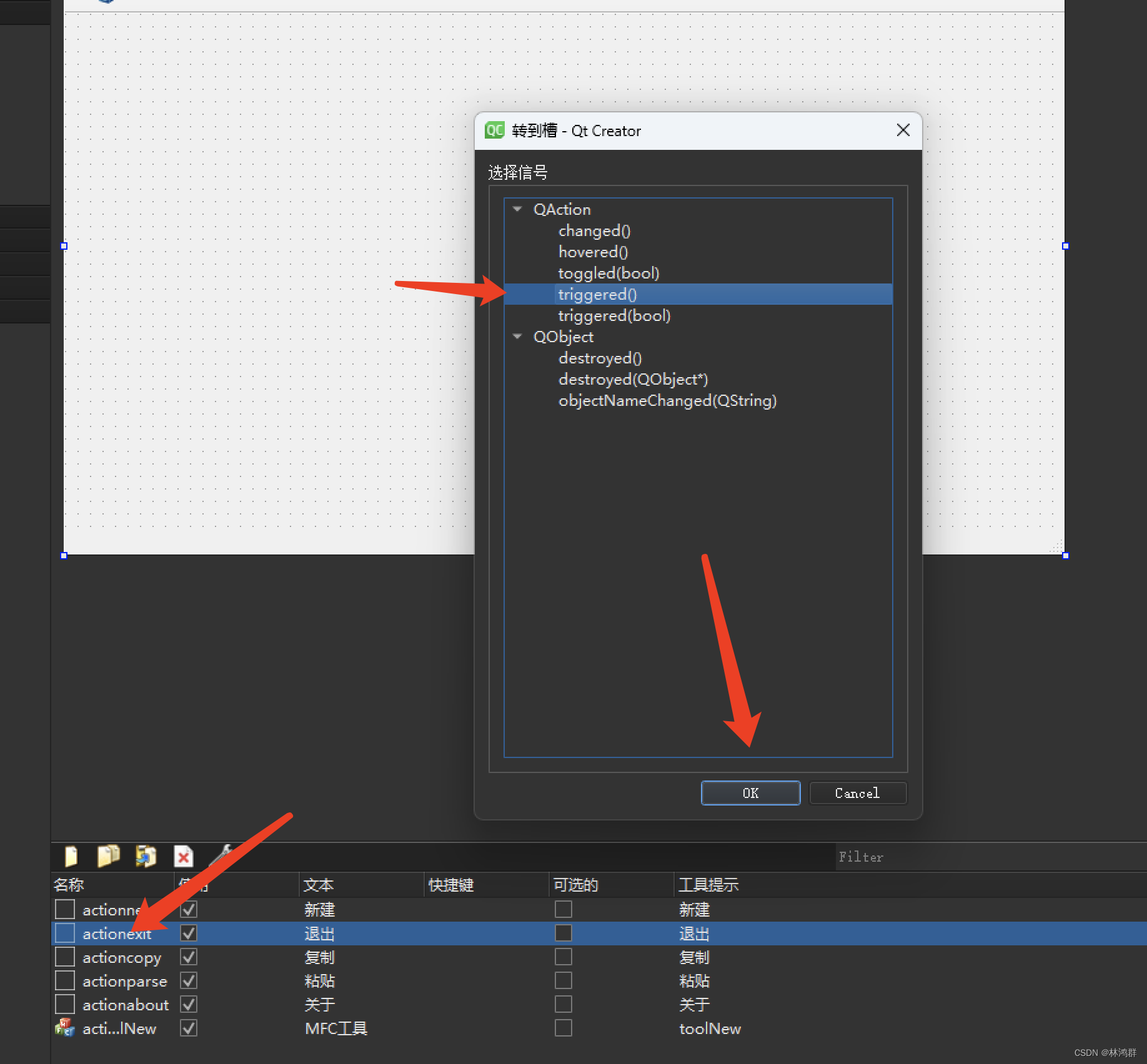 下面来实现动态添加的工具栏按钮的信号与槽的关联