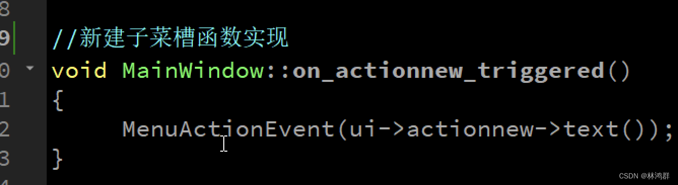 接下来为主菜单与子菜单关联信号与槽,使菜单点击有响应