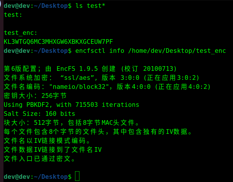 encfs /home/dev/Desktop/test_enc /home/dev/Desktop/test