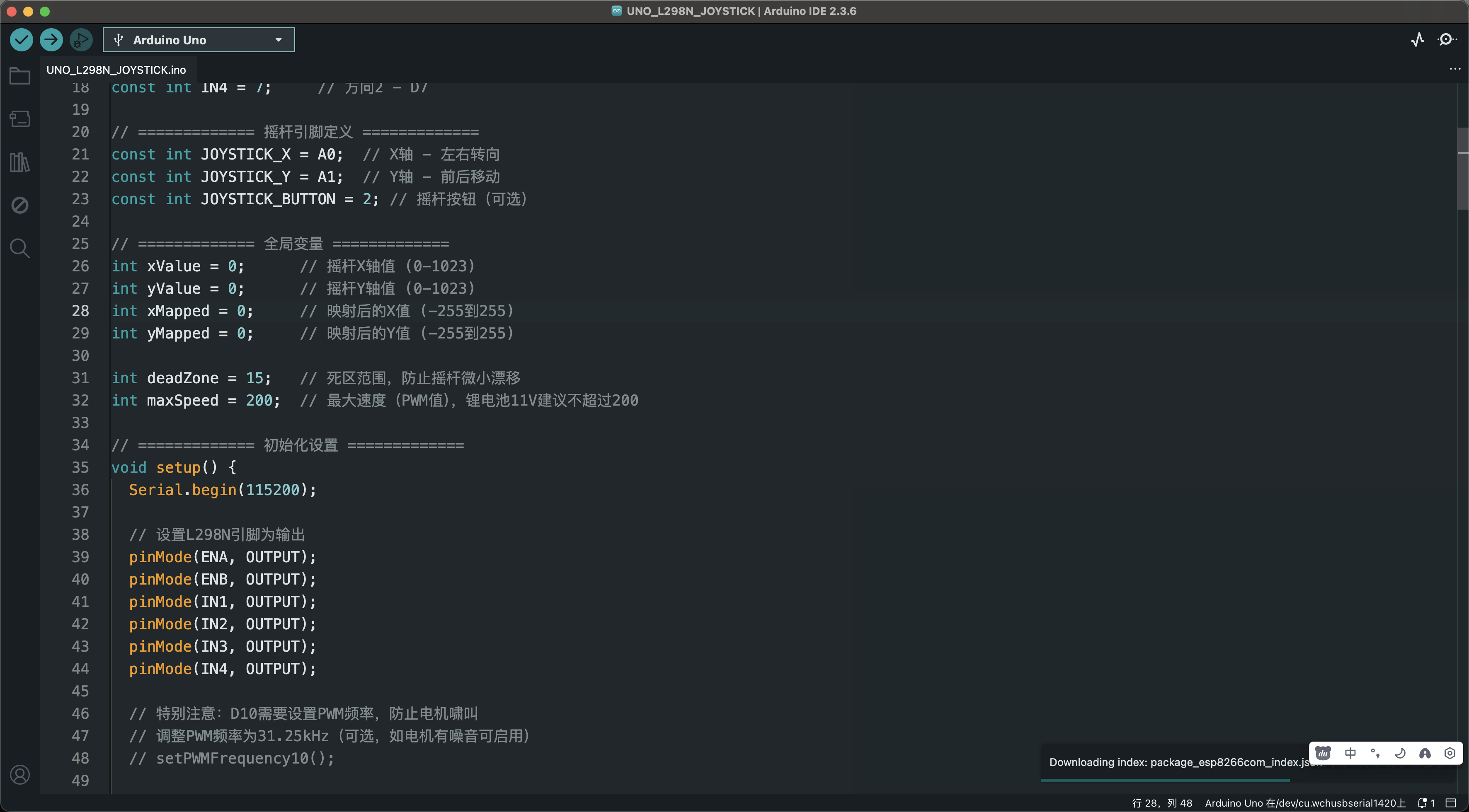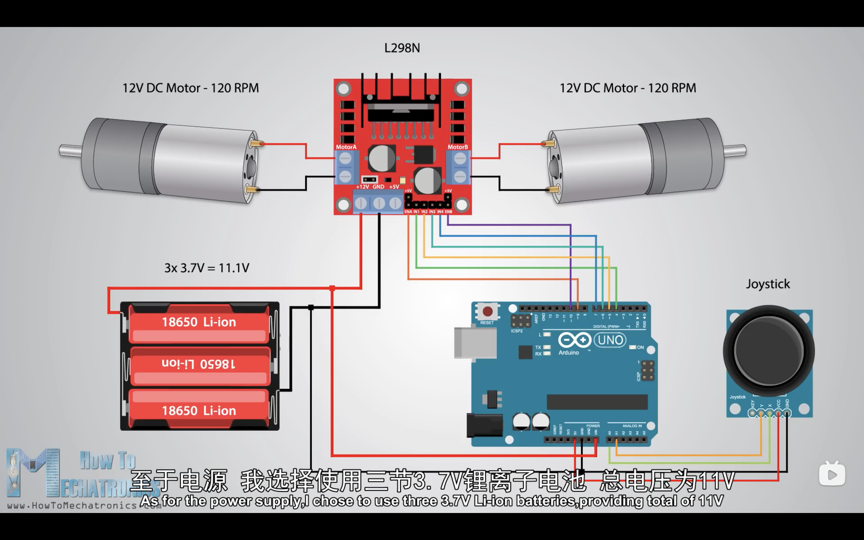 * Arduino UNO + L298N + Joystick 控制双直流电机