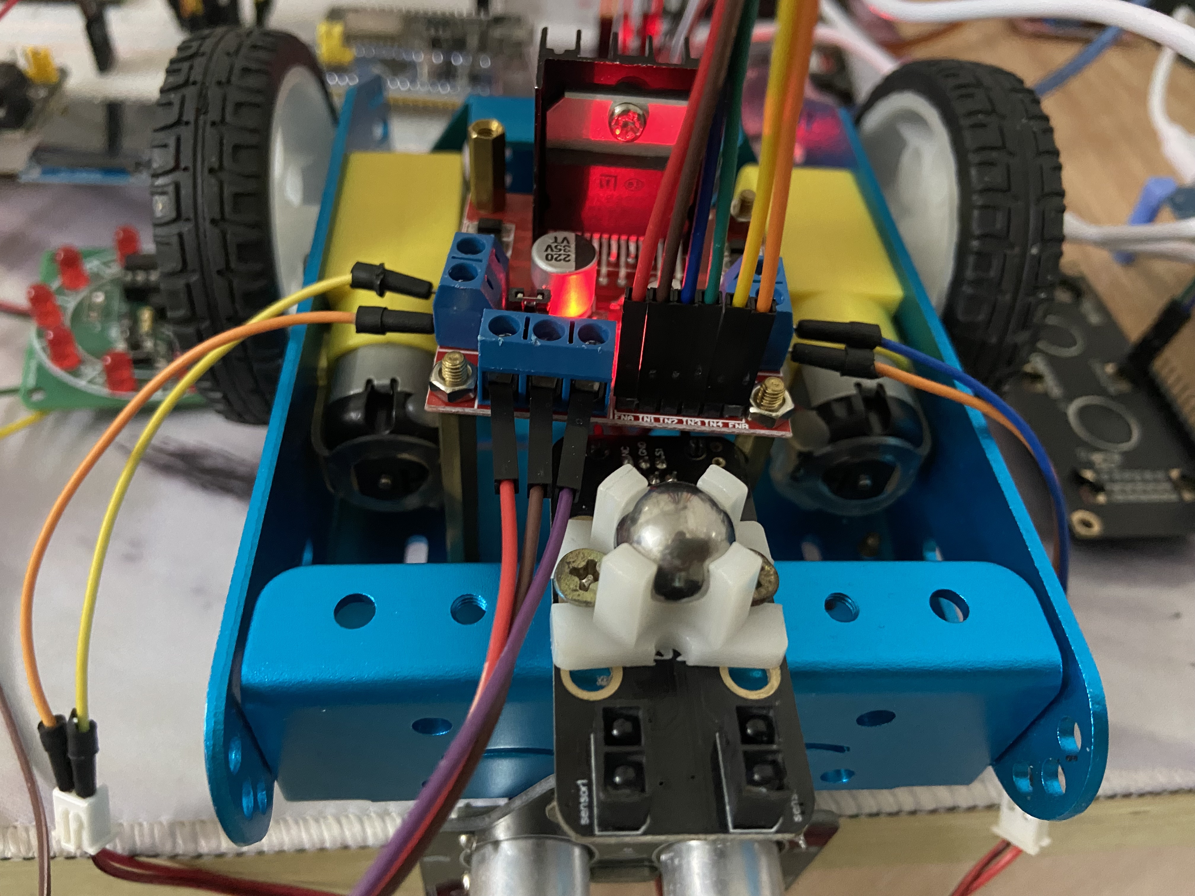 Arduino 的9,10分别接L298N的ENA,ENB