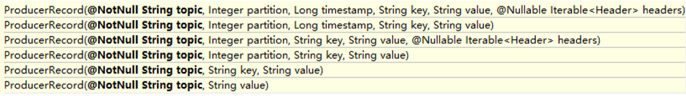 下面我们看一下ProducerRecord 对象,生产者发送消息到kafka集群,new了一个ProducerRecord对象,通过对象重载实现了分区原则。