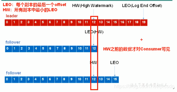 HW:指的是消费者能见到的最大的 offset,ISR 队列中最小的 LEO