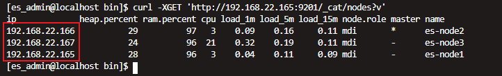 curl -XGET 'http://192.168.22.165:9201/_cat/nodes?v'
