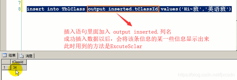 插入语句成功以后,返回具体某一列的值。output inserted.列名