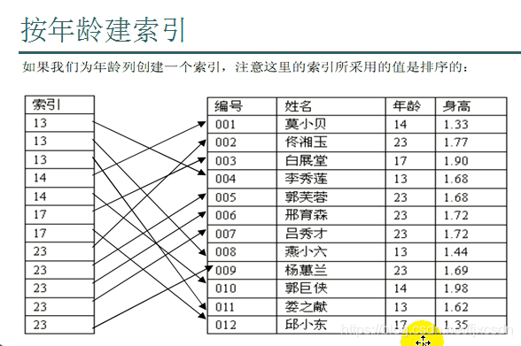 非聚集索引(逻辑):一个数据表中可以有多个非聚集索。如果班级中的人数按照年龄排序,位置不一定。