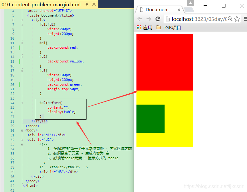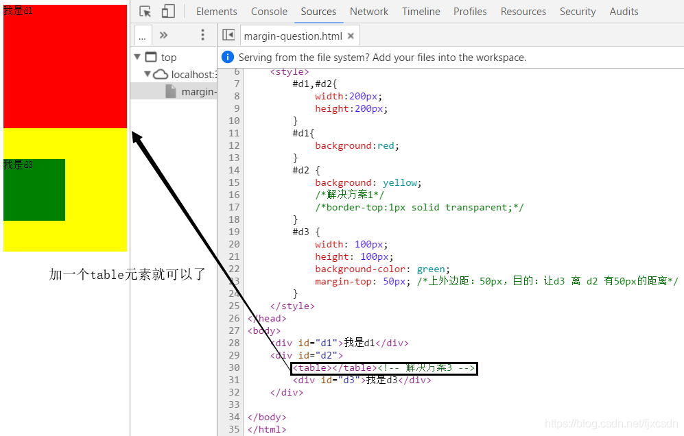 3、在父元素的第一个子元素位置处,增加一个空 <table></table>