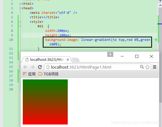 | (火狐)Firefox : -moz- | background:-moz-linear-gradient(0deg,red,blue); |