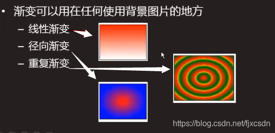 | 重复渐变 | 将线性渐变 或 径向渐变 重复几次实现出来 |