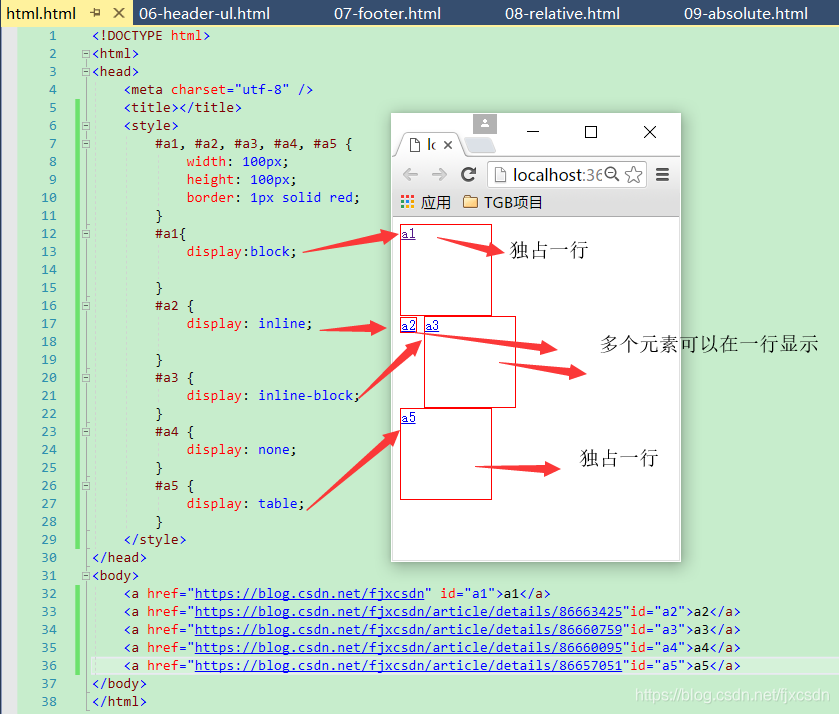 block:让元素表现的和块级元素一样 inline: 让元素表现的和行内元素一样 inline-block:让元素表现的和行内块一样 table:让元素表现的和表格元素一样 |