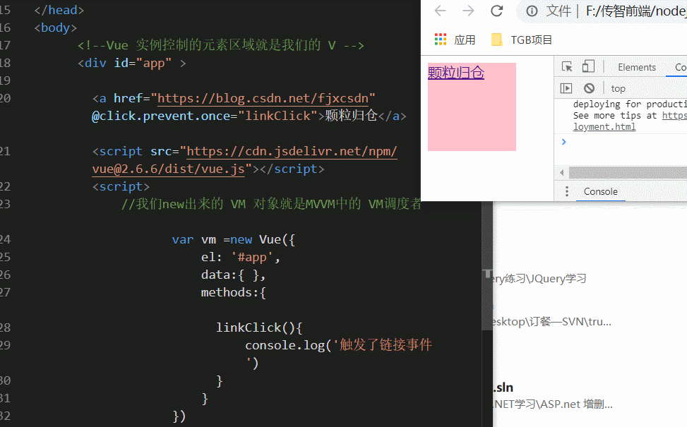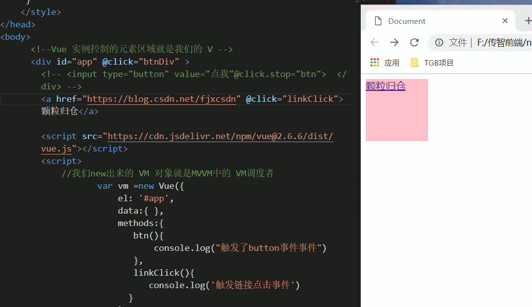 效果如下:添加prevent事件修饰符后,组织了链接地址自动跳转的行为