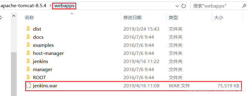 将下载后的jekinsjar包放在Tomact的webapps文件下