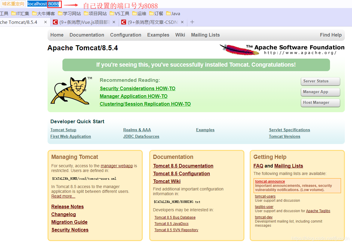 访问Tomcat:http://localhost:8088,可以在server.xml中修改端口号。