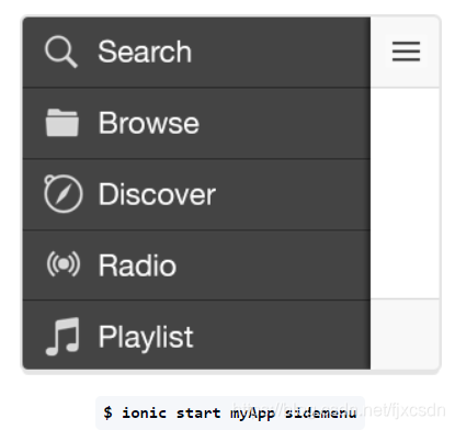 2.创建项目:不同的创建命令,样式不同,有空白的(blank)、底部分页(tabs)、左边菜单(sidemenu)
