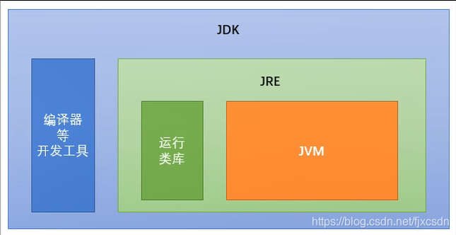 JRE(Java Runtime Environment):Java程序运行时的环境,包含了JVM以及运行时所需要的类库,运行Java程序必须的集合。如果我们运行一个Java程序,则必须有Java程序的运行环境,也就是JRE。