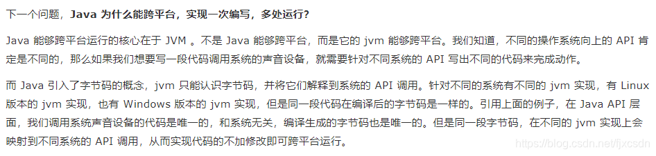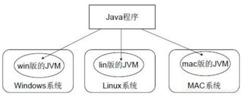 我们知道我们开发Java程序,Java程序具有跨平台性,学过操作系统的同学可能知道,软件的运行必须在操作系统上运行,操作系统为软件的运行提供了环境,而Java语言最大的优点就是Java程序可以在任何操作系统上运行,这是Java的一大特性,我们也叫Java语言的跨平台性,该特性就是在基于JVM上实现的。它就好比不同的翻译家一样,Java程序如果在windows操作系统上运行,则有一个windows版本的JVM,如果想在linux上运行,则有一个linux版本的JVM,即每个操作系统上都有不同版本的Java虚拟机。